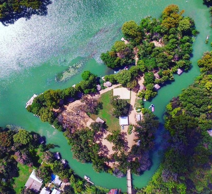 You access this private hideaway by driving across a 100-foot wooden bridge. Once you cross over on to the island, you’ll discover a very special place. Large cypress trees & cabanas outline the 4,000-foot perimeter lakefront Island!